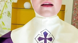 Reni's Dream! Shy hooded blonde girl puts on her gloves and starts to play with herself!