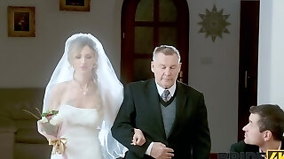 Newly wedded bride Olivia Shine gives head and gets fucked