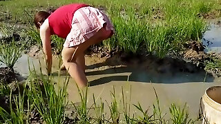 village dame in rice field upskirted