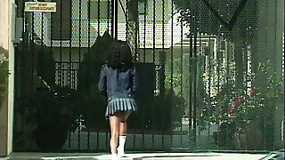 Japanese teen in college girl uniform stripped