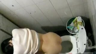 Bushy wet hole recorded on a spy cam juicing on a restroom