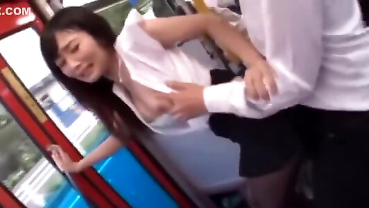 Japanese cutie is tempted to gargle in a pulverize bus