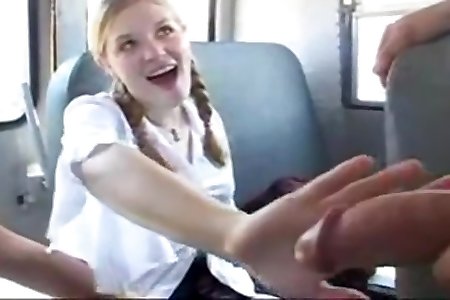 Coed Fellates and Tugs Spear in a Bus!