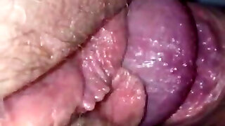 Slow fuckin' wife's pussy and pissing inwards. Close-up