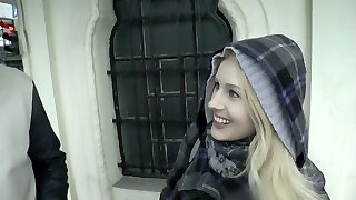 First-timer European teen Lola Taylor drilled up in the car Part 02