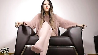 Chinese sweetheart puts on ultra thick tights to support her sprained ankle