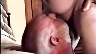 Young dark haired licks grandpa all over and fucks him