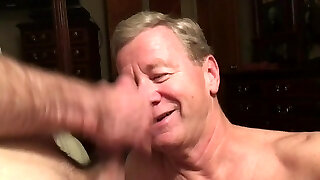 Old Faggot Cocksucker Gets Jism Facial and Eats Cum