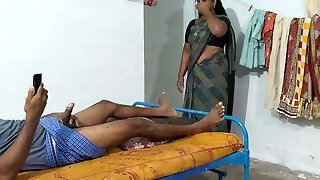 A stepmother dressed in a saree She was hide watching me tugging while watching porn video