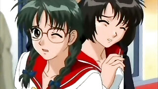 Cute anime coed paws her hard nipples and gets fucked