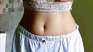 19 year old busty webcam girl with innocent face touches her big all-natural ti